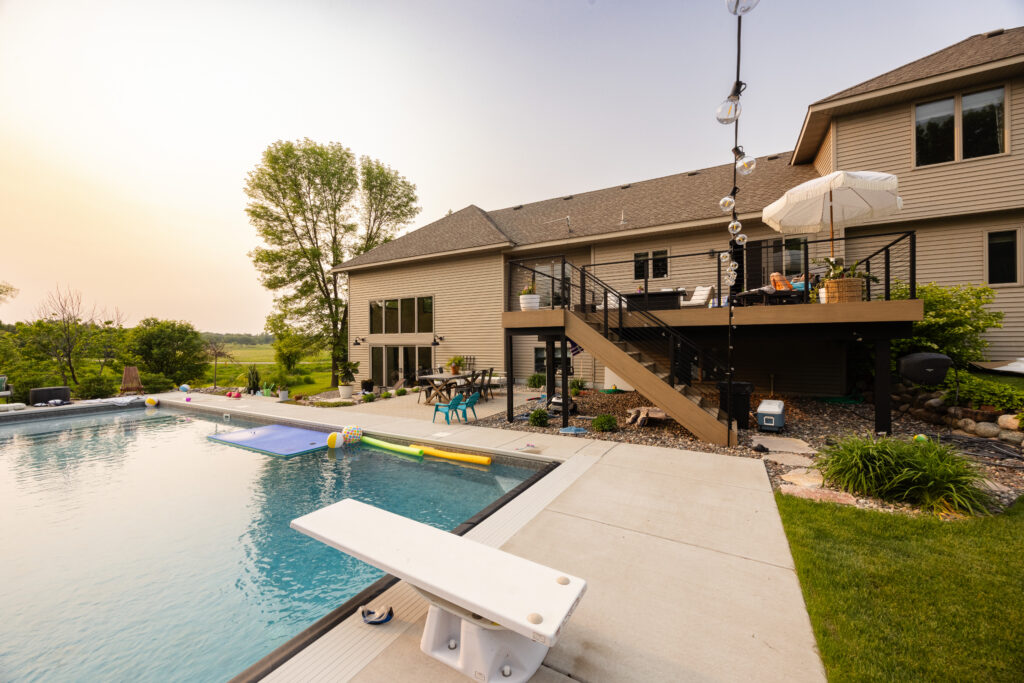 For Morgan and Jamie Molitor of construction2style in the Minneapolis-St. Paul area, this one took a few years. From the start, their backyard wasn’t a one-phase project. It was something they built step by step, making thoughtful decisions along the way. It started back in October of 2021 with an in-ground pool. Once that was in place, the next phase of the project was obvious. What about the space next to the pool?
